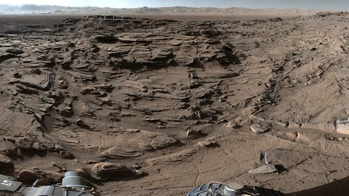 NASA опубликовало панорамное видео Марса, снятое с помощью планетохода Curiosity. Панорама составлена из снимков, сделанных с горного хребта Веры Рубин в кратере Гейла. Поскольку съемка производилась незадолго до зимнего солнцестояния на Марсе, небо на планете было ясным, что позволило получить на кадрах множество деталей. Curiosity — марсоход третьего поколения, представляющий собой автономную химическую лабораторию. Высадка ровера на Марс состоялась 6 августа 2012 года. К началу 2018 года Curiosity "прошел" по планете 18 километров.