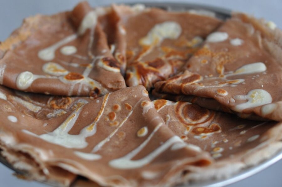 Предлагаю испечь эти чудесные шоколадные блинчики! Готовятся из минимума ингредиентов, легко и быстро. Очень нежные, вкусные и красивые. Вы только посмотрите на них! И для масленичной недели подойдут, да и просто ими приятно перекусить, хорошее дополнение к чаепитию. Ингредиенты: Молоко — 3 Стакана; Мука — 310 Грамм; Сахар — 2-3 Ст. ложки; Масло растительное — 2,5 ст. ложки; Куриные яйца - 3 штуки; Какао — 2 Ст. ложки (или пол плитки шоколада); Ванилин - 1 щепотка (по вкусу); Приготовление Взбить в теплом молоке яйца, сахар и ванилин. Добавить растительное масло и муку. Тщательно взбивать до исчезновения комочков. Отделите примерно 0,5 стакана теста и отложите его в сторону - им потом создадите узоры на блинах. Оставшееся тесто смешайте с какао-порошком, ну или растопленным шоколадом. Некоторые еще могут щепотку кофе добавить для новых оттенков вкуса и соответствующего аромата. Всё, налейте немного теста в раскаленную сковороду, распределите по ней. Сверху тонкой струйкой налейте "бел