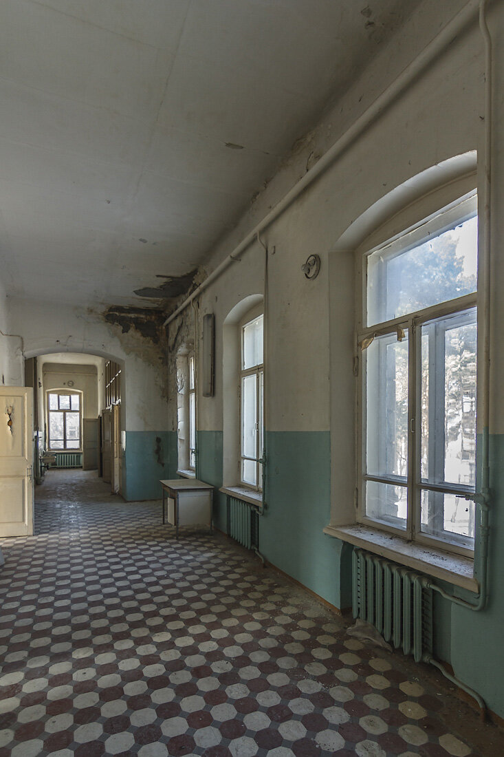 Роддом в маленьком провинциальном городке, закрытый из-за аварийного состояния. Не разграбленный, не разбитый. Внутри даже работало отопление. Вроде бы, посещение объекта должно было вселять оптимизм. Но отовсюду: от затёртой кафельной плитки, от ржавой масляной краски, старых операционных столов сквозило бесконечной тоской.