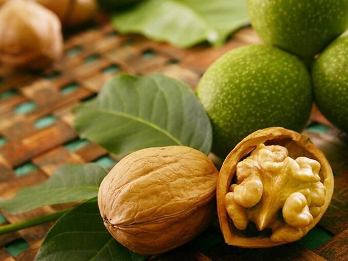 Издавна грецкий орех завоевал признание людей. Свое название в Древней Руси орех получил из-за грецких перекупщиков, которые ими торговали. На Кавказе грецкий орех причисляют к священному дереву. А у молдован есть традиция сажать орех у дома, где появился новорожденный. Грецкий орех является самым калорийным: в 100 г орехов содержится 630-670 ккал. Но, несмотря на это, диетологи советуют включать его в рацион. А объясняется это богатейшим содержанием полезных веществ: витаминов (А, В1, В2, , В6, В12, Е, С, К, РР, Омега-3), микро- и макроэлементов (фосфор, калий, магний, натрий, кальций, цинк, марганец и железо) и кислот (линолиновая, галловая, элаговая, олеиновая, пальмитиновая и фолиевая). Ежедневное употреблении ореха позволяет справиться с заболеваниями печени, сердца и мозга. Омега-3 и магний, содержащийся в орехе, помогает справиться с большими умственными нагрузками и улучшает память. Жирные кислоты ореха позволяют развивать память и интеллект ребенка. Грецкий орех способствует