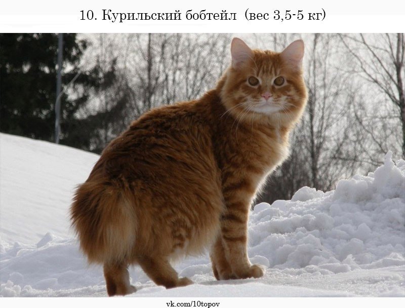 Не каждый сможет позволить себе такое удовольствие, завести таких "кошечек". 10-е место: Курильский бобтейл — российская порода короткохвостой кошки. Родиной этой породы считаются Курильские острова Кунашир и Итуруп, оттуда в конце XX века курильский бобтейл был завезен на материк. Самцы этой породы достигают веса 6,8 кг, вес самок колеблется от 3,6 до 5 кг. 9-е место: Шартрез - короткошерстная порода кошек, признанная во всём мире, кроме Великобритании, где её считают вариантом британской короткошерстной. Порода получила свое название от города Шартр, т.к. именно здесь в средние века началось разведение этих кошек. В Германии эту породу называют картезианской кошкой, т.к. считается, что её держали монахи Ордена картезианцев. Шартрез - большая, сильная и мускулистая кошка, которую во Франции часто называют собако-кошка, т.к. шартрезы очень умны, откликаются на свое имя и даже могут научиться приносить хозяину предметы.