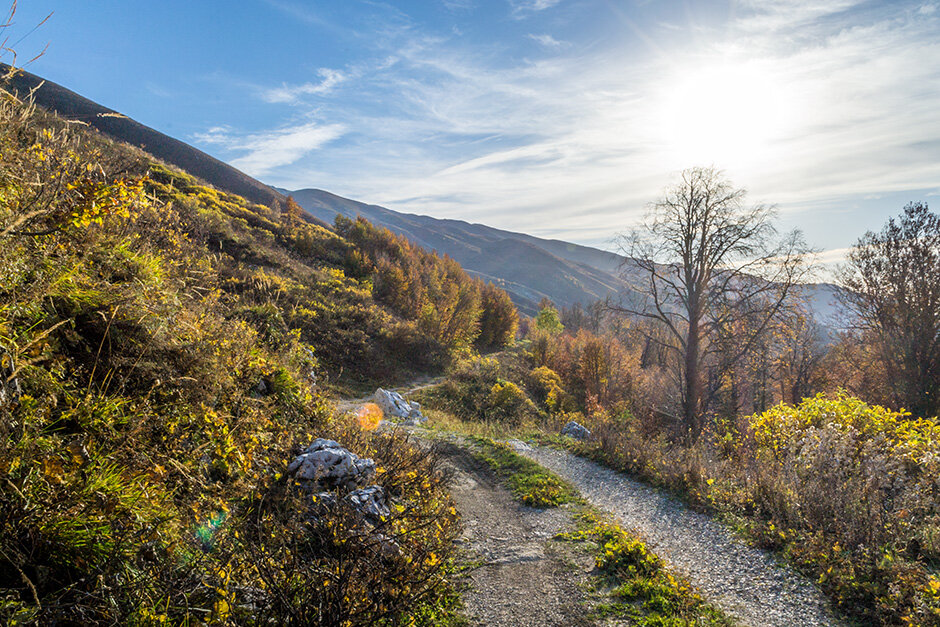 За полчаса до заката мы не то что не проехали две трети дороги, а даже не вернулись к машине. Мы, тем не менее, заняты только волшебными красками осенних гор.