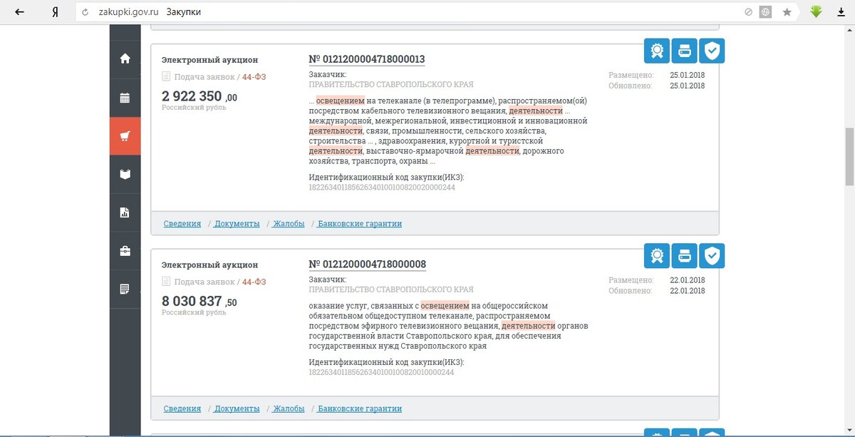 Итак, регулярно органы власти покупают сюжеты о своей деятельности в СМИ. Делают они это за бюджетные деньги. Значительная часть таких закупок публикуется на портале госзакупок.