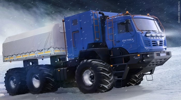 «КамАЗ-Арктика» - это экологически безопасный вездеход, предназначенный для транспортировки людей и грузов на территориях арктических зон России, Сибири и Дальнего Востока.