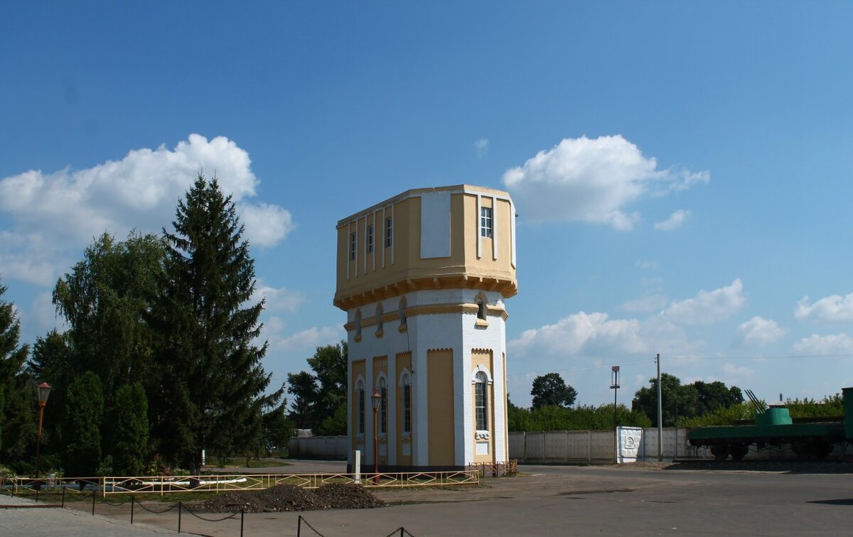 Эта достопримечательность Мценска находится рядом с железнодорожным вокзалом на привокзальной площади. Здание имеет очень интересную необычную форму, сходную с известной шахматной фигурой, поэтому жители города и называют его "ладьёй". Построено здание ещё до революции, в 1910-1912 годах. Об этом свидетельствует дата, выложенная из кирпича вверху здания. Общая высота составляет 20 метров. Это водонапорная башня. Мценская водонапорная башня – это одно из нескольких сохранившихся на территории Орловской области водонапорных конструкций. Башня очень удачно по стилю сочетается с зданием вокзала и смотрится очень эффектно благодаря выкрашенному в яркий цвет фасаду (башню периодически перекрашивают) и своей необычной форме. Водонапорная башня верой и правдой служила раньше для заправки паровозов. А железнодорожную станцию на линии Москва—Курск здесь открыли ещё в 1868 году. Вот такой замечательный объект есть в моём любимом городе. Красивое здание, не правда ли? (Все фото с сайта
