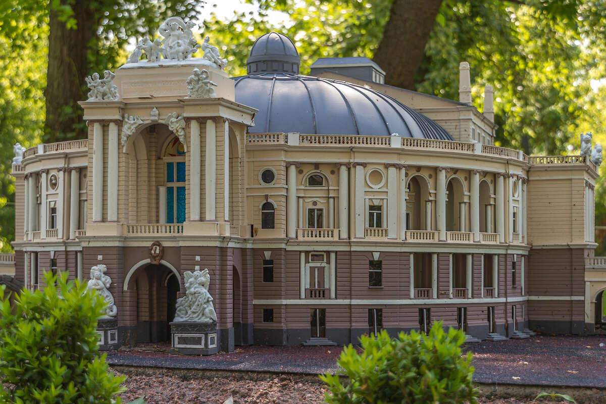 Здесь представлены модели 48 зданий, архитектурных комплексов и различных сооружений в масштабе 1:33.