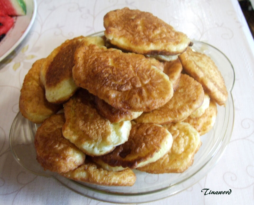 Обычно мы покупаем молоко на рынке у знакомой молочницы. Молоко всегда жирное и вкусное. Мы его сразу обычно кипятим. Иногда выпиваем сразу, иногда варим кашу. А иногда оно долго стоит в холодильнике и потом когда его перекипятишь, оно сворачивается. Если уже свернулось, то тогда я шумовкой выкладываю творожную массу на блюдо, а оставшуюся сыворотку использую для оладушек. Вот и сегодня. Молоко свернулось. И я испекла оладушки. Рецепт: 1 литр сыворотки, 1/2 чайной ложки соды, 2 куриных яйца, и муки сколько возьмет. Вот это сколько возьмет мне очень нравится. Это уже на глаз опытной хозяйки. Так как определить эту меру: сколько возьмет? Просто. Вы насыпаете немного муки перемешиваете с сывороткой, содой, яйцами. Полученное тесто не должно литься с ложки как на блины, оно должно падать с ложки небольшими не крутыми кусочками. Если вы положите больше муки, то не страшно. Оладушки будут более высокими и пышными. Меньше плоскими. Но и плоские это понятие относительное, ведь вы положил