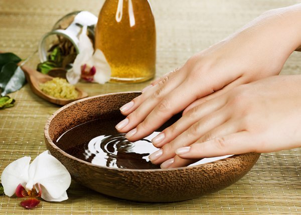 Для приготовления такой ванночки необходимо согреть льняное масло на водяной бане (именно слегка согреть, а не нагреть, иначе при высокой температуре льняное масло потеряет все свои полезные свойства). В теплое льняное масло погрузить руки и подержать 10-15 минут. После масло с ру