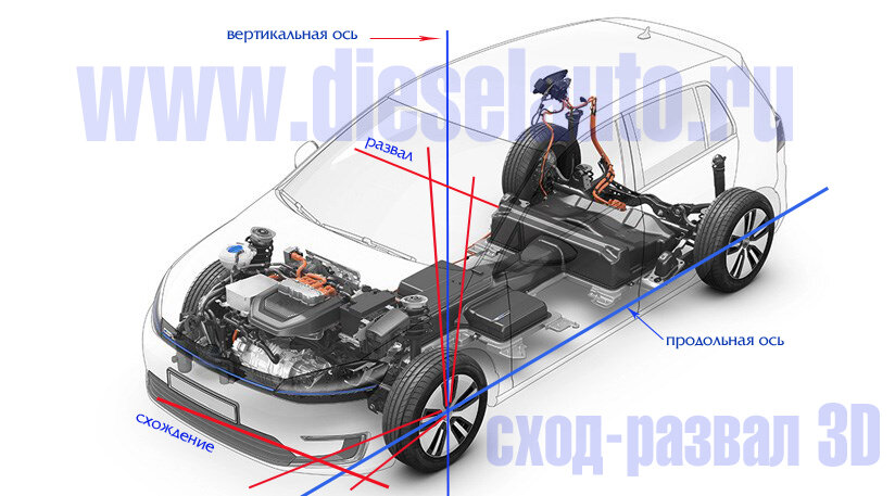 Что такое Сход-развал. Зачем он нужен, и на что влияет?? Говоря простым языком, сход-развал – это углы установки колес относительно продольной и вертикальной осей шасси автомобиля. Развалом - называется угол между плоскостью вращения колеса и вертикалью. Если колесо идеально выставлено перпендикулярно к поверхности дорожного покрытия, то это называют - нулевой развал.. На большинстве современных легковых автомобилях в настоящее время производителями устанавливается отрицательный развал. Отрицательный развал обеспечивает повышенное сцепление с дорогой при прохождении поворотов, однако увеличивается износ шин с внутренней стороны. Важно добиться максимальной симметрии углов установки развала, иначе при прямолинейном движении возникнет эффект увода автомобиля в одну из сторон. Схождением – называется угол установки колес относительно продольной оси шасси автомобиля. На большинстве современных легковых автомобилей обычно устанавливается положительное схождение (передние кромки колес