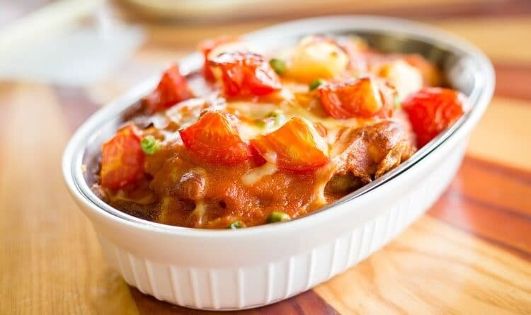 Это сочное, ароматное блюдо вполне может претендовать на место за праздничным столом. Оно прекрасно и на вид, и на вкус. Готовится буквально на раз, два, три. Печень за счёт обжарки и сока от помидор получается необыкновенно нежной. Попробуйте, вам должно понравится) Состав продуктов: 600 грамм куриной печени 150 грамм твёрдого сыра 2 средних помидора 1 луковица 3-4 зуб. чеснока зелень по вкусу соль чёрный молотый перец раст. масло Приготовление: Луковицу очистить и порезать кубиками. Печень промыть, порезать на 2-3 части. Разогреть на сковороде растительное масло, бросить туда лук. Немного обжарить и добавить печень. Жарить 5-7 минут, помешивая. Форму для запекания смазать маслом, выложить обжаренную печень с луком. Посолить и поперчить. Чеснок очистить и пропустить через пресс, зелень мелко порубить. Посыпать этим печень. Помидоры помыть и нарезать небольшими брусочками, выложить поверх чеснока с зеленью. Сыр натереть на крупной тёрке, и посыпать сверху. Отправить в горячую духовку