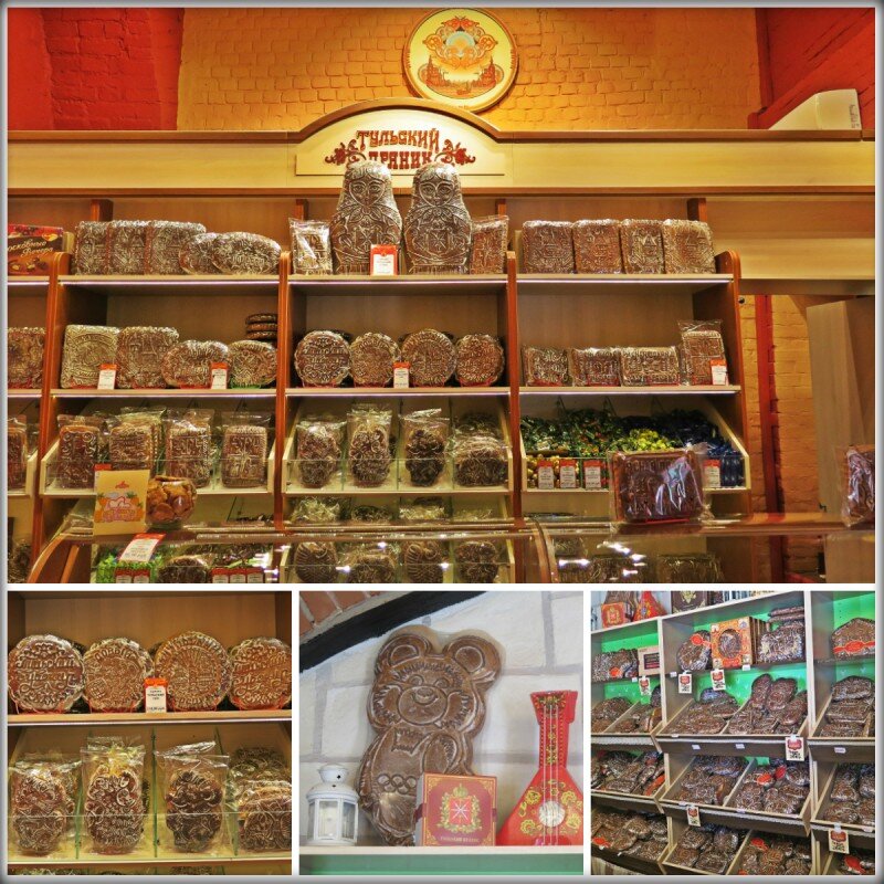 Пряники в Туле продают повсюду: в каждом продуктовом магазине, в палатках у вокзала и в фирменных магазинах в Кремле! Тульский печатный пряник, самый известный вид русских пряников. Чаще всего тульский пряник имеет вид прямоугольной плитки или плоской фигуры и содержит начинку из повидла или сгущенного молока. Первое упоминание о тульском прянике содержится в писцовой книге 1685 года, но современное производство пряников в Туле возобновилось в 1954 году благодаря Анастасу Ивановичу Микояну. И вот уже почти 70 лет тульские пряники - самый известный продуктовый бренд Тулы. Самый большой пряник в магазине