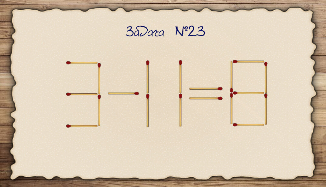 Условие задачи: Из 15 спичек выложено неверное выражение: 3-11=8. Какую спичку нужно переложить, чтобы получилось верное равенство? Справился? Подписывайся, если хочешь еще больше таких задач! Ставь лайк, если нашел ответ!
