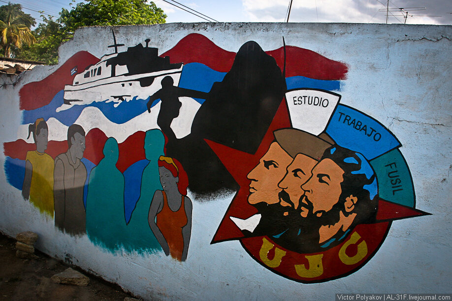 Если в целом по Кубе на каждом свободном заборе есть изображение Че Гевары, то в Санта Кларе кроме портрета будет как минимум еще и его цитата, а то и пара портретов. Но, вам ведь это не интересно?! Поэтому я фотографировал редкие рисунки неЧе.