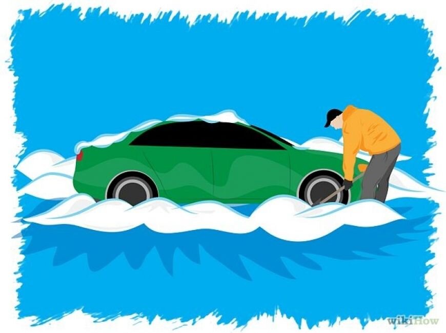 2. Высвободите автомобиль из лап снега и льда. Будет очень печально, если отъезжая, вы повредите резину или коробку автомобиля. Поэтому всегда высвобождайте вмерзшие в землю колёса. Конечно, не все возят с собой лопаты, но рекомендую прикупить на зиму мастерок, савок или сапёрную лапатку. Это компактный инструмент, который к тому же очень эффективен, нежели твои руки. Отверткой или другим острым инструментом вы можете разбить лёд вокруг колёс, а лопаткой можете выкопать себе путь на волю.