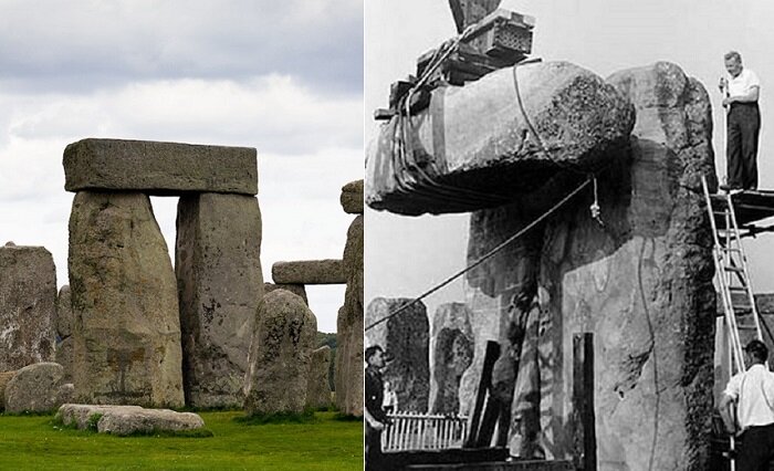 Как правило, осматривая достопримечательности, туристы верят всему, о чем рассказывает гид. Однако часто случается так, что исторические памятники или архитектурные находки являются ничем иным, как хорошо «раскрученной» фальшивкой. В этом обзоре собраны известные достопримечательности, подлинность которых вызывает много вопросов. Стоунхендж Стоунхендж считается одним из важнейших памятников древней архитектуры. Одни его считают астрологическим календарем, другие – святилищем друидом, третьи – просто местом силы. Десяткам тысяч туристов гиды рассказывают, сколько веков этим камням, но почему-то умалчивают о том, что в 1958 году Стоунхендж подвергли основательной реконструкции. Реконструкция Стоунхенджа в 1958 году. Полвека назад проводилась масштабная работа по восстановлению древнего памятника. Однако вернее будет сказать, что Стоунхендж практически построили заново. Упавшие глыбы археологи расставляли, как считали нужным. Использовали современную технику и бетон. Учитывая эти факт
