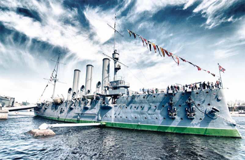 Легендарный крейсер «Аврора» в ночь с 15 на 16 июля 2016 года после двухгодичного ремонта в доках Кронштадта вернулся на свою вечную стоянку. Накануне 100-летия Великой Октябрьской социалистической революции, которую нынче принято называть Октябрьским переворотом, вспомним о судне, которое выстрелом из своего носового орудия дало сигнал к началу восстания 25 октября 1917 года. Именно выстрелом, а не залпом, ведь залп — это одновременный выстрел из нескольких орудий.
