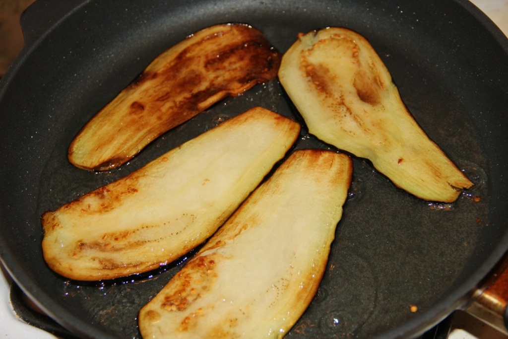 Обжарим их на масле - можно смешать оливковое и подсолнечное, можно на любом из них.
