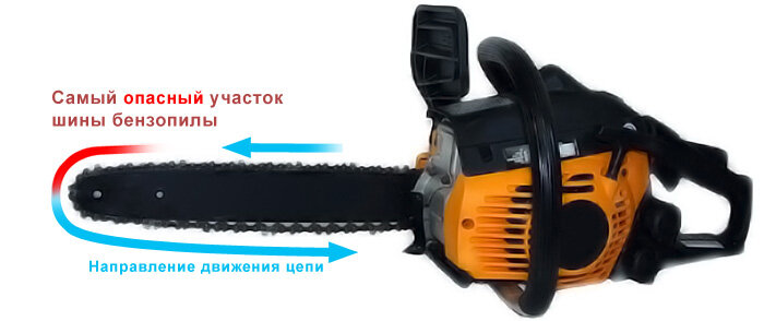 Про опасность отскока бензопилы знают многие, и про коварность болгарки тоже. Но при этом, предвидеть возможность обратного удара нужно при работе с любым режущим бензо или электро инструментом. Принцип этого явления одинаков, и его важно понимать. Когда машина буксует, её колеса проворачиваются. Для движения нужно хорошее сцепление протектора колес с дорожным покрытием. С инструментом все получается наоборот. При большой скорости вращения, зубья режущей поверхности врезаются в материал. Если скорость недостаточна, эти зубья начинают работать как протектор двигающегося автомобиля. Они отталкиваются от материала, и инструмент вылетает из него. Лишь тормозящий фактор пропадает, обороты резко возрастают! Инструмент может быть отброшен на оператора… и последствия такого события непредсказуемы. Эффект «тяги» инструмента чувствует любой, кто с ним работает. Например, если пилить бензопилой бревно, которое находится снизу шины, то пилу тянет вперед. Если шина пилы снизу – пилу будет выталкива