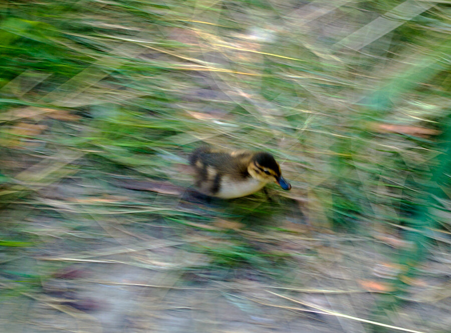 Молодая мама-утка решила показать своим деткам большой мир. С утра их умыла, причесала, приодела и они дружной семейкой отправились смотреть родовое гнездо своей матушки на соседнее болотце. Путь был не близкий, метров сорок, а то и все пятьдесят. Пере этим мама-утка проинструктировала малышей как могла и подготовила к трудностям, ведь надо было идти через очень густую траву, а это ой как тяжело. Утятки очень внимательно выслушали матушку, настроились и приободрились.