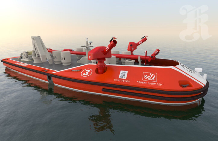 Создан проект нового роботизированного,противопожарного катера RALamander 2000, длиной 20 м и мощностью пенного выброса 2400 m3/hr. Морская инженерная компания Robert Allan Ltd и Kongsberg Maritime объединили свои усилия и разработали ряд новых дистанционно управляемых портовых катеров RALamander, сообщается 6 февраля в совместном пресс-релизе. Суда, которые будут учитывать растущие потребности в безопасности современных гаваней, позволят более агрессивно бороться с пожарами на воде, одновременно повышая безопасность персонала. Неэкранированная каюта RALamander будет располагаться в непосредственной близости от пожара и иметь возможность приблизить монитор к источнику огня. В Kongsberg Maritime сказал, что пожары, связанные с возгоранием контейнеров, нефтехимии, на береговых сооружениях или судах, могут подвергаться более быстрому тушению, если не бояться токсичности дыма в случае отсутствия человека. Телескопическая мачта нового катера может привести к тому, что один из трех гидранто