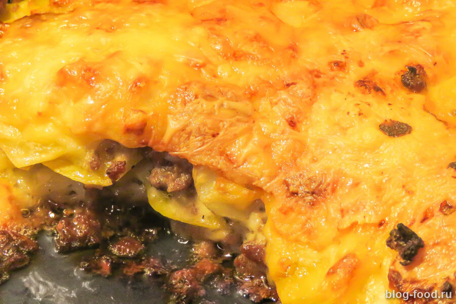 Добрый день! А почему нет? Лазанья, по сути — запеканка, а из картошки все эти гратены сам бог велел делать. В общем попробуем. Продуктовый набор: Разогреваем духовку до 180°С. Режем лук мелкими кубиками и слегка обжариваем на небольшом количестве растительного масла: Тимьян с розмарином ощипываем, чеснок режем меленько: К луку добавляем фарш, разминаем, чтобы не было больших комков и загружаем травы: Готовим минут пять, после чего кладём чеснок, перемешиваем и отставляем в сторону: Картошку чистим и режем как на гратен — тонкими слоями: Кидаем картофель в кипящую подсоленную воду и варим до полуготовности — минут пять-десять (зависит от толщины кусочков). Пока картоха варится, делаем соус Бешамель. В сотейнике распускаем сливочное масло и всыпаем муку. Постоянно мешая, доводим смесь до явного орехового запаха: Наливаем молоко, добавляем мускатный орех и солим по вкусу. Продолжая энергично работать венчиком, доводим соус до необходимой степени густоты: На дно формы для запекания налив