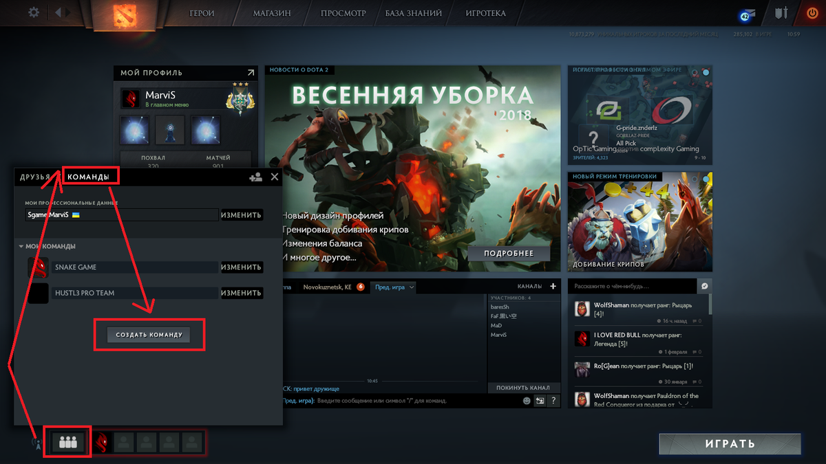Команда в Dota 2 – это заранее подготовленные 5 игроков, способные взаимодействовать друг с другом, находясь под руководством капитана этой команды. В команде играть гораздо эффективнее и можно добиться больших высот.