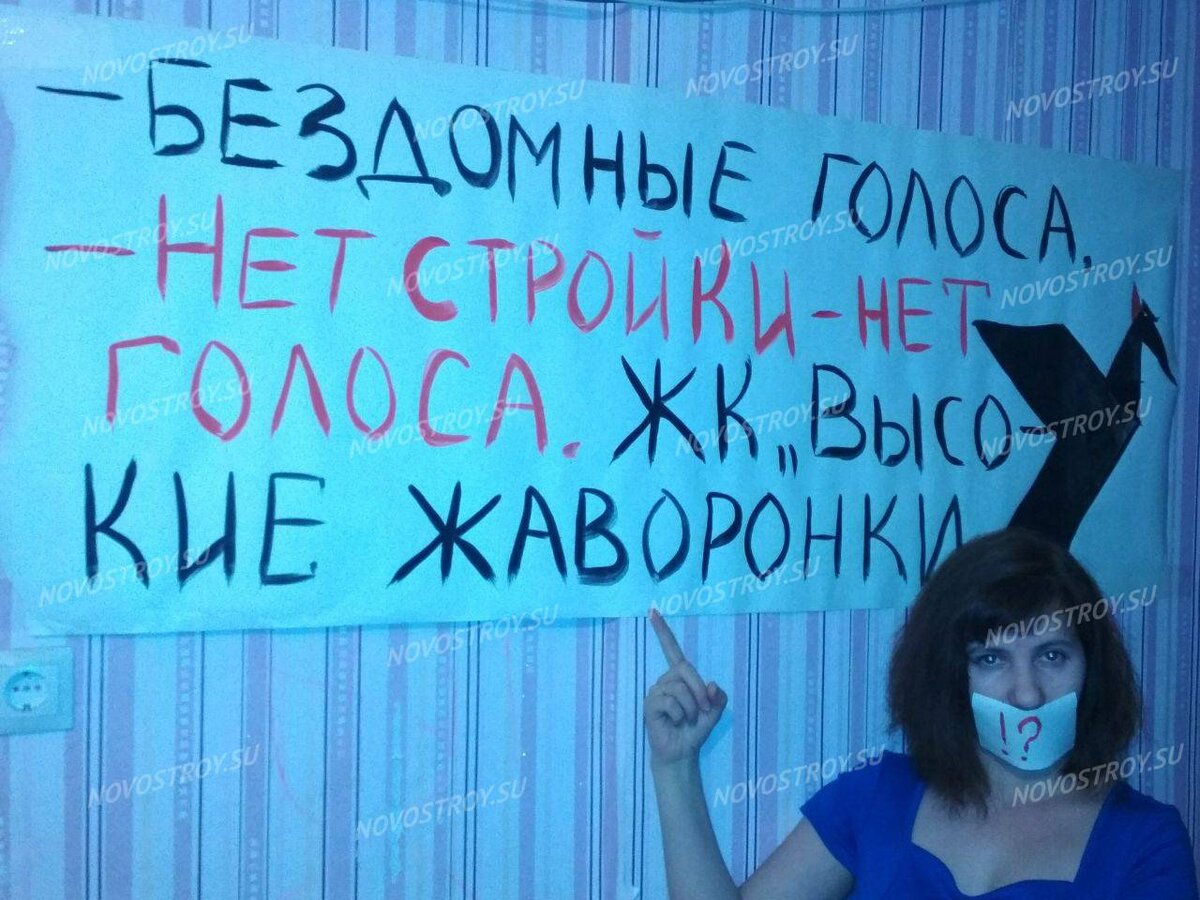 Новые дольщики присоединяются к флэшмобу «#нетдоманетголоса. Участники акции заявляют, что отказываются голосовать на выборах президента России, пока не достроят их жильё. Они выкладывают в соцсетях свои фотографии с заклеенными ртами и сопровождают их хэштегами «#вопросПутину» и «#нетдоманетголоса». В социальных сетях уже более 100 подобных публикаций. По количеству постов лидируют дольщики ЖК «Высокие Жаворонки» из Одинцовского района Подмосковья. Акцию также поддержали жители Санкт-Петербурга и Ленинградской области. Присоединились и обманутые дольщики Вологды (ЖК «Времена Года»); Томска ЖК на Мира, 33, Ярославля (ЖК на Фрунзе, 77), Уфы (ЖК «Серебрянный ручей») Волгограда и других регионов.