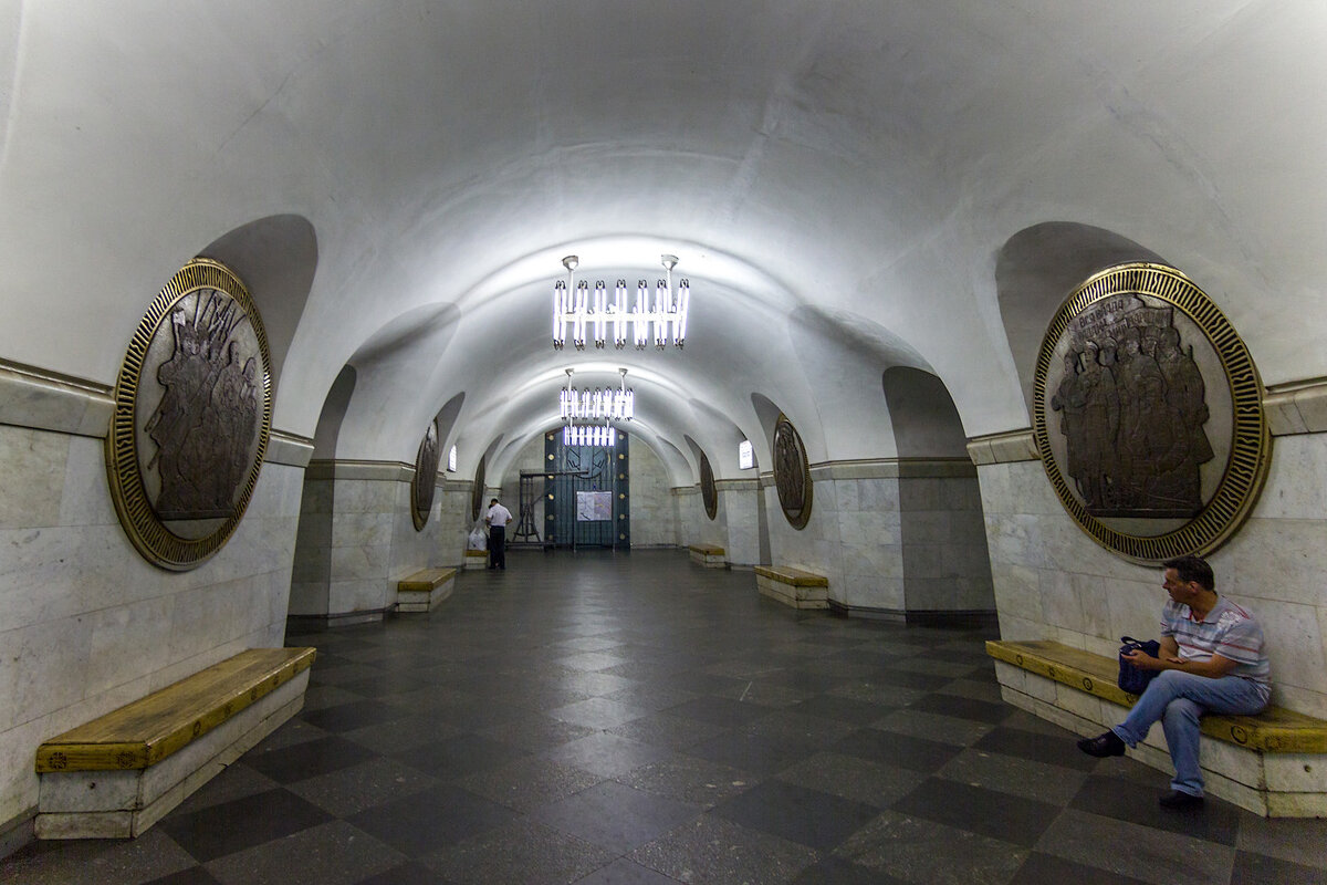 А вот и самая глубокая станция метро в мире. «Арсенальная» открыта в составе первого участка в 1960 году.