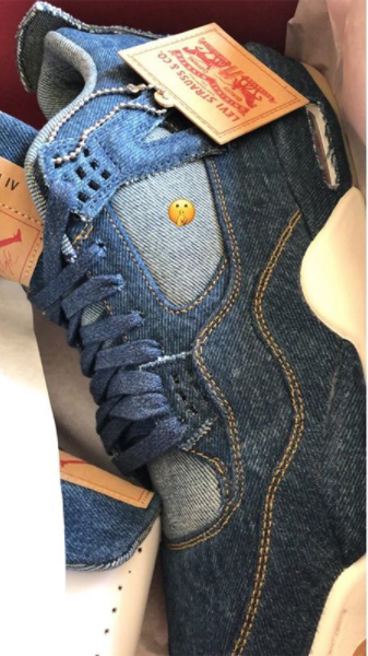 Когда в интернете начинают крайне активно появляться «слитые» фотки, это значит, что шансов на релиз тех или иных кроссовок становится все выше и выше. На прошлой неделе в инстаграме Трэвиса Скотта появилось небольшое видео, на котором можно разглядеть Air Jordan 4 x Levi's, о которых так давно и так много говорили все инсайдеры из мира кроссовок. Многие почитали, что это какой-то кастом или возможно семпл, но, кажется, нас все-таки ждет релиз этой крутой коллаборации. Сегодня появилась свежая фотография модели, где можно лучше рассмотреть столь желанную пару. Верх пары выполнен из качественной джинсы цвета Indigo с разными оттенками по всей площади ткани. Главная особенность этой пары — нашивка на язычке, стилизованная под фирменные нашивки с джинсов Levi's. Еще видоизменен был классический пластиковый брелок.Подчеркивает все это белая подошва с видимым баллоном Air в области пятки. Уже сейчас известно, что пара в мужской размерной сетке будет стоить 220 долларов и 200 — в подростк