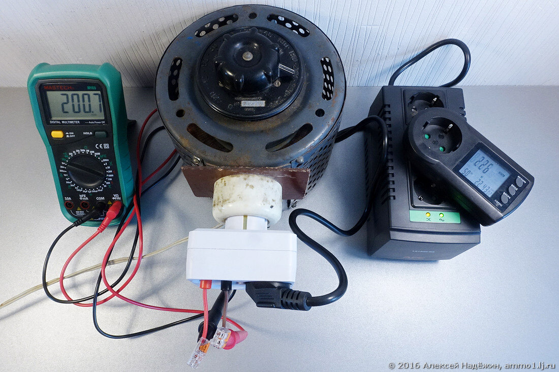 Для анализа работы стабилизатора я подключил его к лабораторному автотрансформатору (ЛАТР), позволяющему плавно менять напряжение на входе стабилизатора.