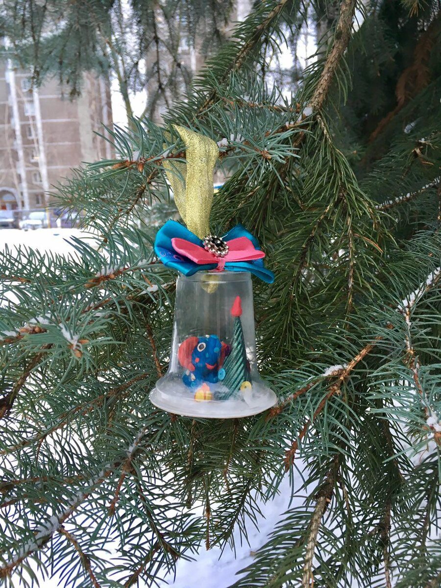 Как же оригинально и уютно выглядит ёлка, украшенная поделками детей и их родителей! Папы могут смастерить игрушки из проволоки, мамы связать или вышить елочные украшения, ребятишки могут сделать бумажные фонарики и разноцветные цепи, вырезать фигурки из картона. Сейчас я поделюсь с вами ещё одним интересным способом изготовления елочной игрушки вместе со своими детьми. Что нам потребуется Пластиковый прозрачный стаканчик (я беру из-под желе или йогурта) Картон Клей ПВА Ножницы Вата Пластилин, бусинки, стразы, цветной гофрокартон, пайетки, мелкие фигурки из киндеров Ленточки Как сделать елочную игрушку 1. Берём стаканчик, переворачиваем и обводим карандашом контур горлышка на картоне. 2. Делаем в донышке дырочку и вставляем ленточку-петельку изнутри. 3. Вместе с ребёнком лепим из пластилина фигурку, из гофрокартона вырезаем ёлочку в виде конуса и склеиваем, украшаем стразами или пайетками, вату рвём на мелкие кусочки. Альтернатива С малышами можно взять мелкие фигурки из яиц-сюрпризов