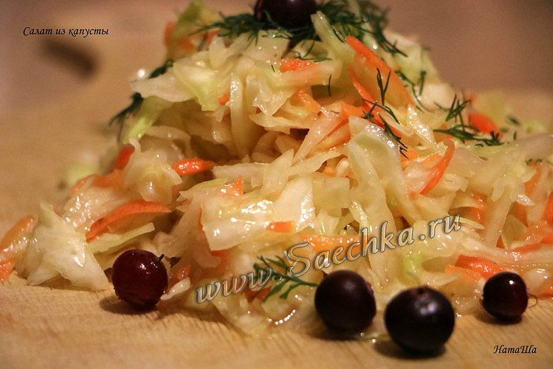 Затем добавляем сахар и яблочный уксус. Капустный салат с морковью перемешать и дать еще минут пять постоять и пропитаться.