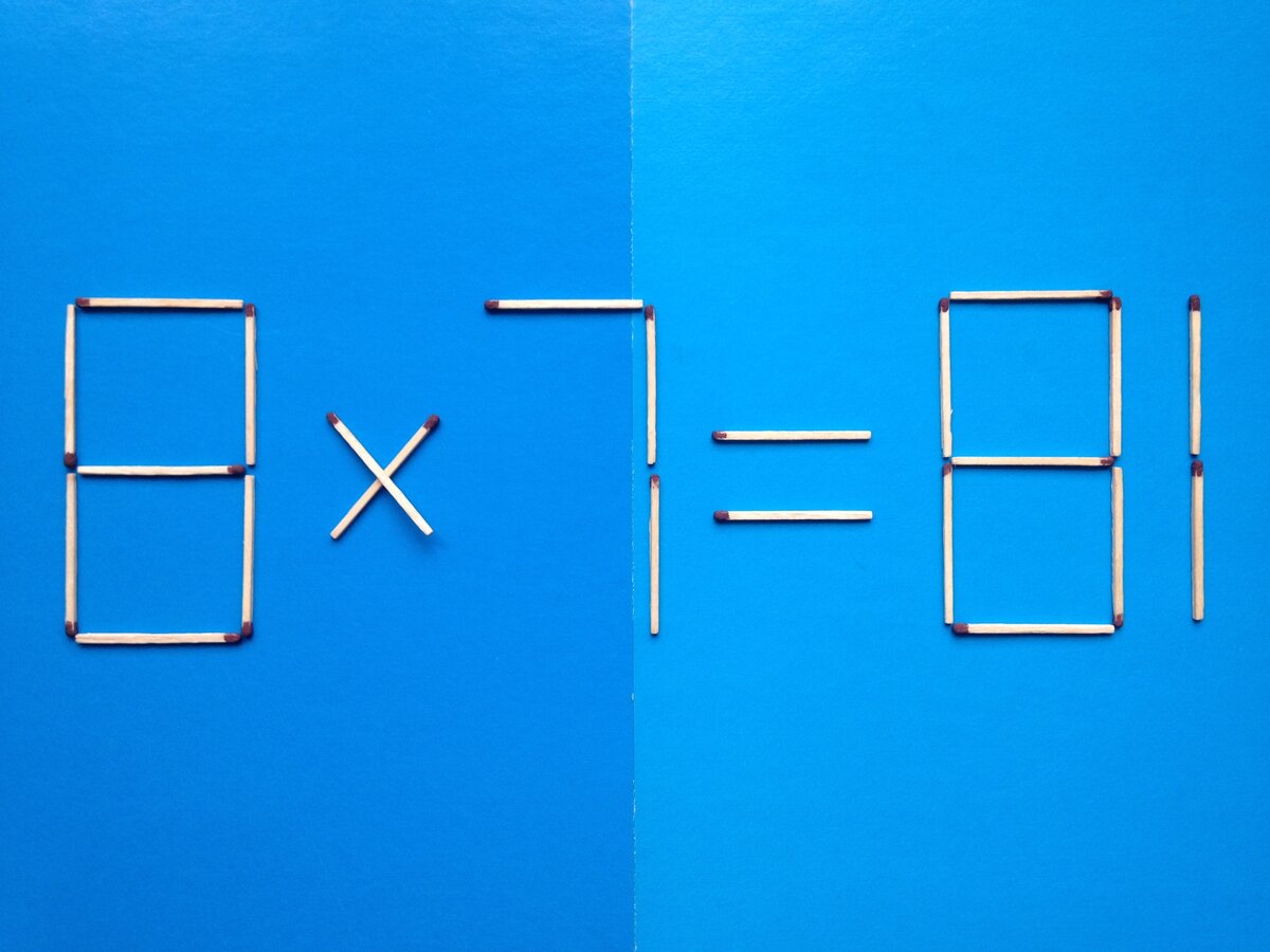 Узнайте, как исправить неверное равенство 8х7=81 на верное равенство, переложив четыре спички! Ответ на Задачу № 376