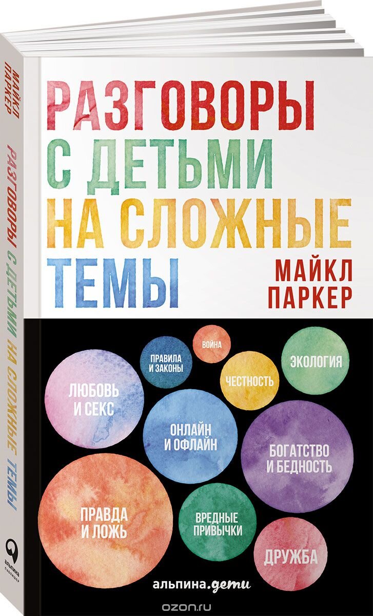 Майкл Паркер — директор школы «Оксли» в Австралии, преподаватель, герой документального фильма «Учителя, которые вдохновляют» и писатель. В книге «Разговоры с детьми на сложные темы» он пишет о том, как лучше обсуждать с детьми спорные темы, чтобы не навязывать им своё мнение. В дополнение к теории о том, как строить беседу, Паркер предлагает 100 с лишним вариантов тем для таких бесед: от воровства до абортов, к каждой из которых приводит возможный сценарий и вопросы для обсуждения. Как формируются этические принципы и ценности у детей Вовсе не обязательно, что самое сильное влияние на ребёнка будут иметь родители. Есть ещё преподаватели, тренеры, друзья. Есть две важные вещи, о которых нужно помнить родителям, чтобы стать среди всех этих влияний главным: нельзя становиться занудными морализаторами, которые беспрекословно указывают, как жить, и необходимо разговаривать с ребёнком об этике и ценностях. Первое подразумевает, что вы никогда не говорите с ребёнком: «Сейчас я объясню