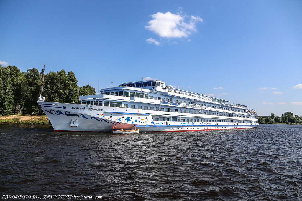 Итак, наш четырехпалубный комфортабельный Теплоход-пансионат «Дмитрий Фурманов» родом из Германии. Построили его по проекту 302 (вернее, он самый первый в этой серии) на верфи VEB Elbewerften Boizenburg/Roßlau, что в Бойценбурге на берегу Эльбы 30 июня 1983 года. С тех времён он только хорошеет и хорошеет, благо находится в надёжных руках. С 2016 года путешествует по нашим рекам под флагом компании «Инфофлот». Кстати, в 2018 году он несколько раз посетит и наш город Пермь, так что успевайте присмотреться и к этим круизам. А так в навигацию-2018 «Дмитрий Фурманов» совершит 27 круизов из Москвы, два из Нижнего Новгорода и один из Санкт-Петербурга. Стойка регистрации на главной палубе. Приветливые милые девчонки встречают путешественников :) Портрет Дмитрия Фурманова, чьё имя и носит теплоход. Именно этот советский писатель в своё время создал образы Петьки и Василия Ивановича. Из серии "интересный факт". В 1984 году на борту теплохода проходили съемки художественного фильма «Время
