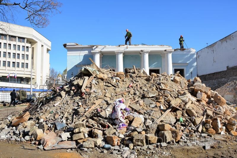 Строители приступили к сносу старого здания театра кукол в Симферополе Строители завершат возведение в Симферополе монолита нового здания театра кукол в сентябре этого года, после чего приступят к внутренним работам. Об этом Крыминформу сообщил руководитель проекта строительства театра кукол компании «Меандр» (подрядчик) Александр Леньшин. «График работ разработан, первоначальная работа – это демонтаж, затем ограждение котлована – работы пройдут до конца апреля, оборудование котлована – до конца мая, и затем уже возведение здания. В конце августа-начале сентября завершим возведение «коробки» здания и приступим к внутренним работам: отделке и прокладке инженерных коммуникаций», – сообщил Леньшин. В настоящий момент строители вышли на завершающую стадию работ по демонтажу старого здания театра. Уже разобрана крыша, подсобные помещения и часть самого театра. Все работы выполняются вручную и продлятся до 10 марта, сейчас они выполнены на 70%.