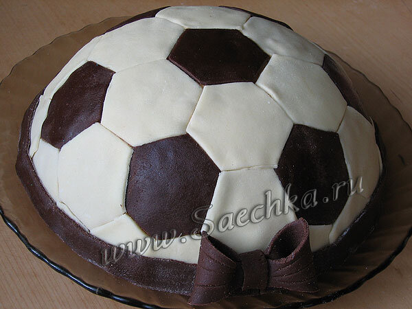 Вообще торт в виде футбольного мяча – действительно импровизация, т.к. основа и мастика были сделаны впервые. Но на мой вкус - сладкий, хотя даже и понравился самой. А дети, и - тем более взрослые тетки - оч хорошо умяли :) Ингредиенты: Тесто: Крем: Как приготовить: