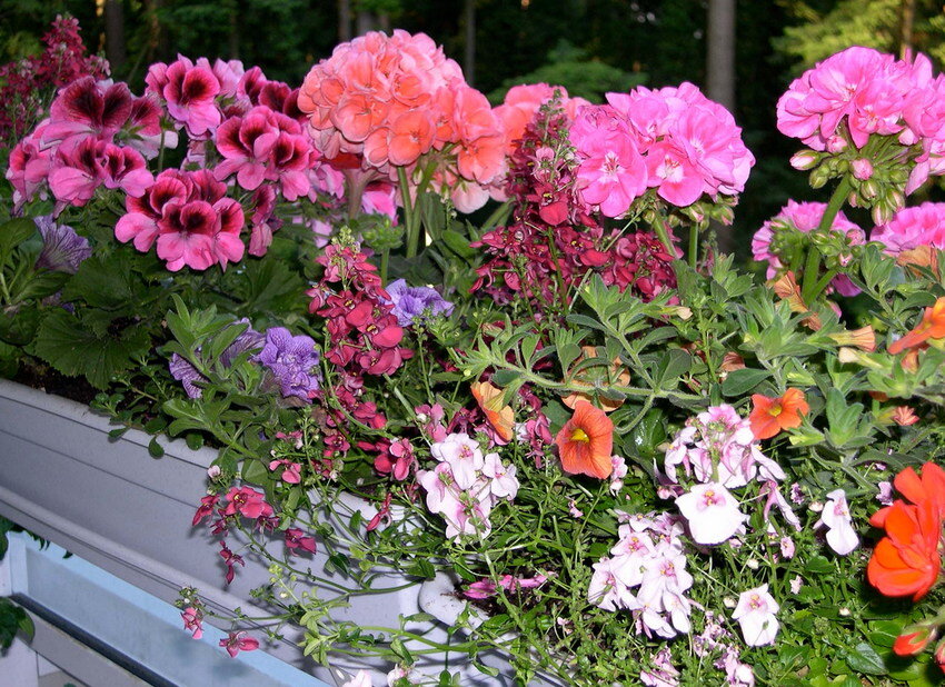 При подборе растений для ящиков учитывают их высоту, характер роста и окраску цветков.
