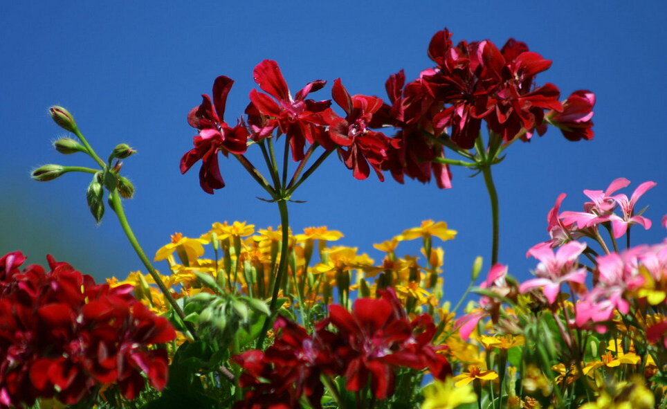 Пеларгония (герань) — просто идеальная культура для контейнеров на балконах и окнах. Она неприхотлива, с длительным периодом цветения, требует регулярного, но не избыточного полива.