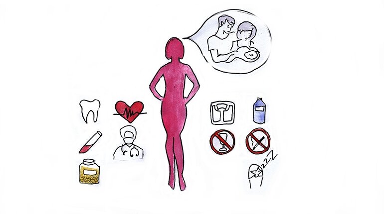 Беременность, как говорится – не болезнь. Если вы хотите забеременеть, я бы не советовала сразу пить разные витамины и выкидывать деньги на обследования. Начните со следующих шагов. Информация Начните изучать литературу о том, как наступает беременность, её прохождение, развитие плода. Обязательно прочитайте о процессе родов, это поможет вам ориентироваться в вашем организме. Главное, ищите информацию у специалистов, а не на форуме. Поход к терапевту Особенно если у вас есть хронические болезни. Тогда надо проконсультироваться, какие лекарства возможно следует заменить. Если же вы здоровы, то хотя бы надо сдать кровь на сахар. Поход к стоматологу Как бы не хотелось, а идти придется. Не сейчас, так при постановке на учет. Поэтому стоит вылечить все зубы заранее, чтобы потом не нервничать. Поход к гинекологу, папе – к урологу. Конечно это основной врач. Он посмотрит насколько ваш организм готов к беременности и выявит наличие или отсутствие скрытых болячек, которые могут повлиять на те