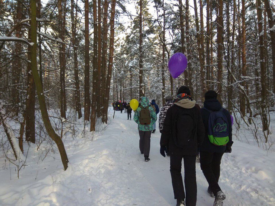 Ребята прошли 7,5 км по пересеченной местности, прямо по лесу и до памятника Талалихину в Кузнечиках (43 км Варшавского шоссе).