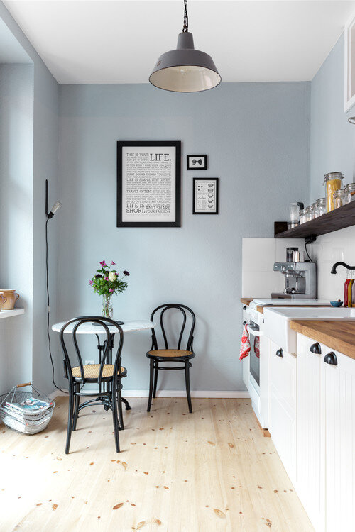Скандинавский стиль – это дизайн в белых, бежевых и пастельных тонах. Его основные черты: простота, практичность, строгость линий и элегантность. В скандинавском стиле домашнее пространство наполнено чистотой, светом и декором из натуральных материалов. И как результат получается чувство абсолютного единения с природой. Для российских квартир с их маленькими "советскими" кухнями скандинавский стиль - настоящая находка! Самый большой плюс в том, что этот светлый и воздушный дизайн способен “расширять” самые тесные кухоньки, несмотря на свою лаконичность и сдержанность. Главное правило дизайна в скандинавском стиле - "ничего лишнего!" Эргономичные решения, гладкие подвесные потолки, деревянная лаконичная мебель -