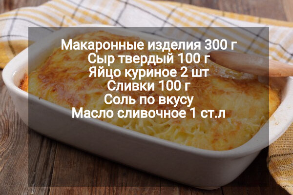 Здравствуйте! Сегодня приготовим с Вами очень легкую и вкусную запеканку, которой вы сможете накормить всю вашу семью. Самое безупречное блюдо для Вас мои внучата!!! Всего за час и за минимум затрат. Это блюдо очень богато кальцием, ведь в нем содержится твердый сыр и сливки. Ингредиенты: Способ приготовления: 1. Для начала в кастрюлю нальем воды и поставим на огонь, добавим соли по вкусу. 2. Как закипит добавим макароны и варим до готовности. 3. Паста готова можно готовить соус. 4. В глубокой миске перемешать яйца, сливки и натертый твердый сыр. 5. Обязательно оставьте немного сыра для посыпания запеканки. 6. Приготовим форму для духовки и смажем ее маслом чтобы не пригорело. 7. Выложим спагетти на форму и польем готовым соусом. 8. Сверху посыплем сыром и поставим в духовку на 30 минут при 180 * С . Приятного аппетита Мои хорошие!!!! Угощайте друзей, Родных и Близких!! Подписывайтесь, Не забываем ставить класс))) Заходите ко мне по чаще!!!