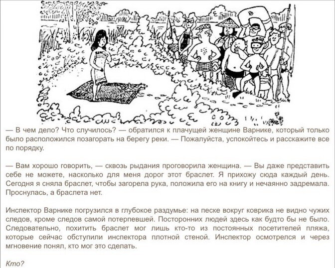Ответ под стрелкой Подпишись на канал, жми палец вверх, стань умнее и сообразительнее, любые загадки будешь щелкать как орехи. Ответ: Достать браслет мог только человек с удочкой.
