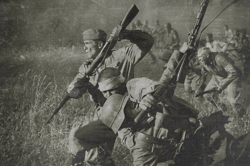 Останавливаться нельзя, надо как можно скорее с противником сблизиться, пока он не пришёл в себя после нашей артподготовки. По полю бежит огромная масса людей и крик «Ура!» превращается в какой-то страшный, утробный, протяжный звук: «А-А-А!!!» Он разносится по всему полю. В голове одна мысль бьётся, скорее добежать, и вцепиться в горло врага и бить его! Бить за все, за погибших друзей, за истерзанные города и деревни, за тот страх, который испытываешь перед атакой.