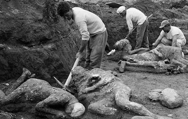 Когда итальянский археолог Джузеппе Фиорелли взял под свой контроль раскопки в Помпеях в 1863 году, он заметил, что регулярно встречаются пустоты в слоях вулканического пепла. Размер и форма этих пустот соответствовали размеру и форме человеческих тел. Именно тогда он понял, что эти пустоты являются результатом наличия человеческих тел, которые разложились в слое пепла и вулканического материала.