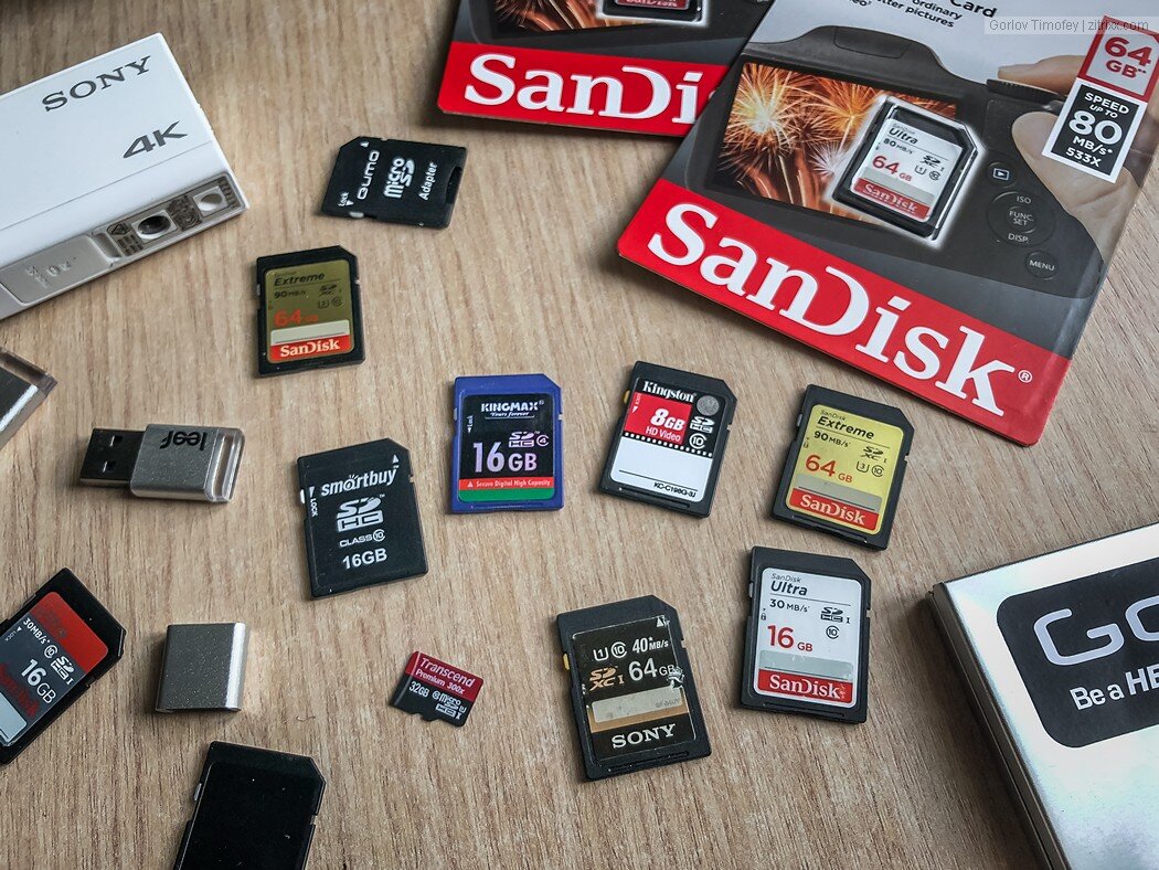 Что такое карта памяти Всегда (!!!) перед выбором карты памяти хорошенько почитайте интернет и выберете для себя что вам нужно. Цена/качество т.к. экономить на этом нельзя, к тому же экономия очень маленькая. Согласитесь, потратить 2700 рублей или 3200 и привезти все кадры в целости и сохранности. Это я к тому, что ниже на фото, в правом верхнем углу "черная карта" без наклейки, я ее отодрал т.к. спустя год она начала барахлить. Первый раз это случилось когда ее вставил и кардридер не увидел, потом перевтыкнул и все получилось. Спустя некоторое время приехав со съемок, ситуация повторилась, но пришлось постараться т.к. он сказал что она не читаемая (!!!) и предложил отформатировать. Оставалось обрызгать ее святой водой, но все получилось, это знак. В общем как только слил все кадры, я ее отправил на пенсию, выкидывать не стал т.к. такие безделушки для меня очень ценны. Карта была на 64 Гб, представьте масштабы потери и экономию в пускай даже 1500 рублей.