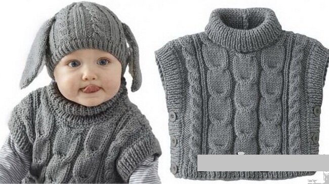 Вяжем Малышам: Безрукавка спицами для мальчика и миленькое пончо для девочки.