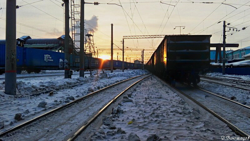 Доброго всем! Вот и прошла дневная смена. Было тепло, светило солнышко. Руки и телефон не мерзли, и фотографировать было тепло и удобно. Поэтому сегодня букв будет мало, а фотографий много. Смена прошла спокойно, без происшествий. Поезда ехали, все работали в штатном режиме. И в моменты свободного времени я доставал свой телефон и фотографировал, фотографировал, фотографировал. Сегодня в подборке будет несколько обработанных фотографий. Обычно я выставляю фото как есть, но сегодня вдруг решил обработать. Видимо весна действует. Расположено в хронологическом порядке. Обещаю, что завтра напишу много J Ваш В.В. Чудесное утро, смены начало, рассвет над вагонами День туманный, тает снег. На станционных путях
