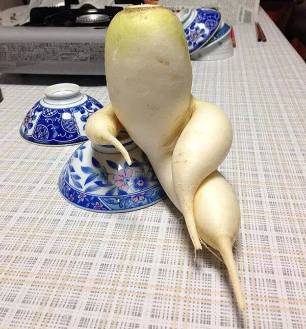 Вы думаете, что овощ всегда останется овощем? Это не так – отдельные экземпляры не хотят быть похожими на своих собратьев и становятся чем угодно, только не самими собой. У нас есть серия удивительных фруктов и овощей, которые пошли против своей природы. Причин, по которым фрукты или овощи могут принимать странные формы множество. Самой распространенной является повреждение рубцовой ткани. Если какая-то часть плода повреждена, особенно на ранней стадии развития, это может замедлить рост в этой области и привести к деформированию остальной части растения. В случае с корнеплодами, неравномерное удобрение почвы также может вызвать странный рост, так например, морковь может разветвляться в окружающие ее более рыхлые участки почвы. Фрукты могут быть специально выращены в определенной форме, хотя здесь не показаны плоды из искусственных форм. Вкладывая их в стеклянные или пластиковые формы, фрукты могут вырастать в виде квадрата, звезды, сердца или любой другой формы. Итак, встречайте: 1. Ре